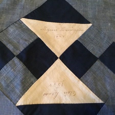 Myron and Elsie marry on 12 September 1894. When the quilt was signed they were both 19 and it is assumed they were school mates, friends, neighbors, or sweethearts as their wedding didn't take place until four years after the signing in 1888.