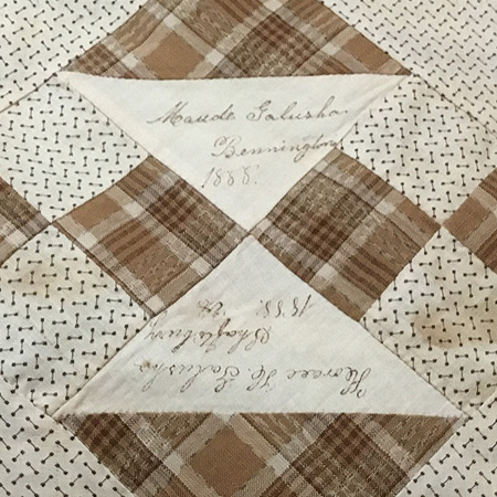 Maude Mattison Galusha was the daughter of Charles and Ellen S. (Mattison) Galusha. She was born on 21 February 1885. When the quilt was signed she would have been about 3 ½ years old. Charles would have been 42 and Ellen was 38.